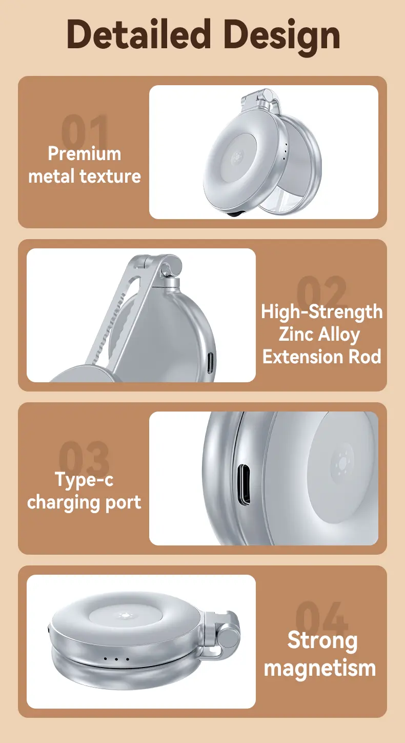 Magnetic 360° rotation · Ultra-bright · Touch controls
